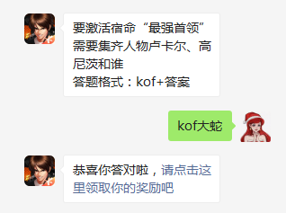 要激活宿命“最强首领”需要集齐人物卢卡尔、高尼茨和谁?这是今日拳皇98终极之战online每日一题的问题,相信有很多玩家都想知道这个问题的真正答案,接下来小编为大家带来了今日每日一题的答案,想要知道答案的玩家可以接着往下看。