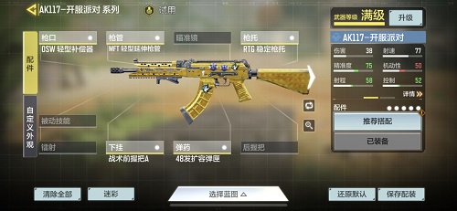 1.玩家如果想要解锁ak117的黄金皮肤,需要将117的所有涂装打出来就可以解锁了;