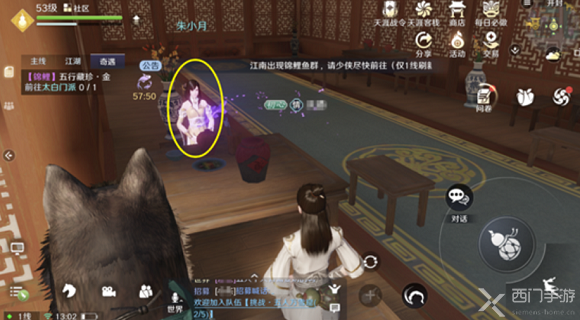 激活之后任务之后,在江南-钱塘市集的木桥上就可以看到朱小月,具体坐标为江南(555.419)。