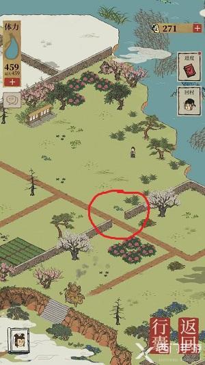 5.耗费体力,将小树林铲掉,就可以获得铲子了,然后就可以除掉障碍物了。